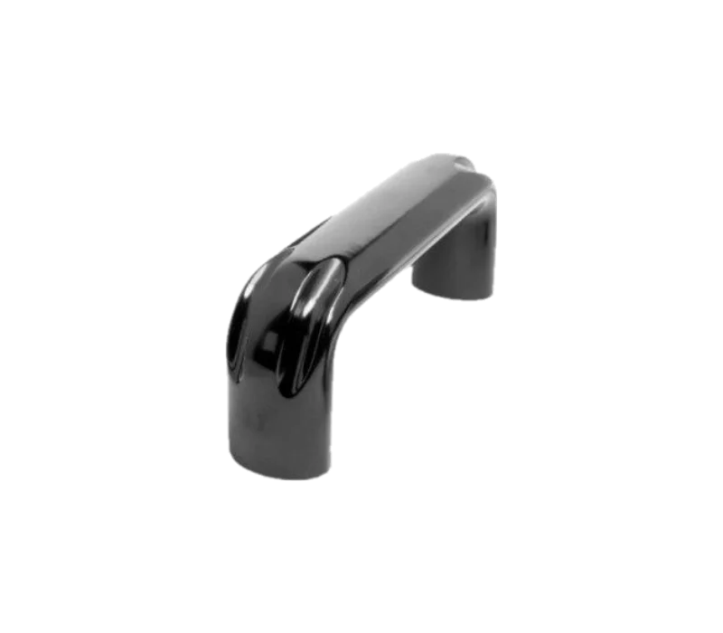 O puxador 103 é produzido em Baquelite e tem sua fixação em bucha de zamak ou latão. Com acabamento polido e exclusivamente na cor preta, tem bom isolamento elétrico e resistência as altas temperaturas.