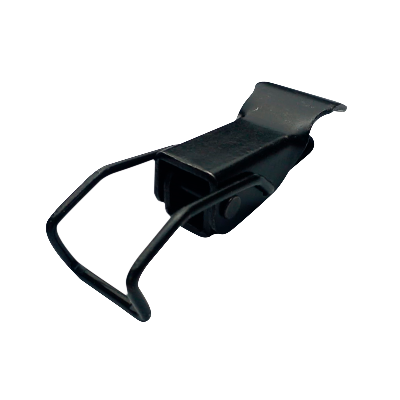 É acionado por uma trava com mola acoplada em um suporte por meio de um rebite permitindo a articulação de abrir e fechar.
