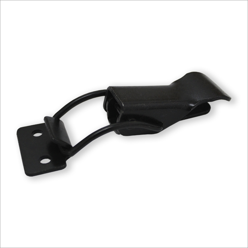 É acionado por uma trava com mola acoplada em um suporte por meio de um rebite permitindo a articulação de abrir e fechar.