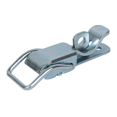 É acionado por uma trava com mola acoplada em um suporte por meio de um rebite permitindo a articulação de abrir e fechar.