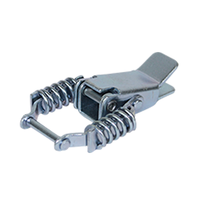 É acionado por uma trava com mola acoplada em um suporte por meio de um rebite permitindo a articulação de abrir e fechar.
